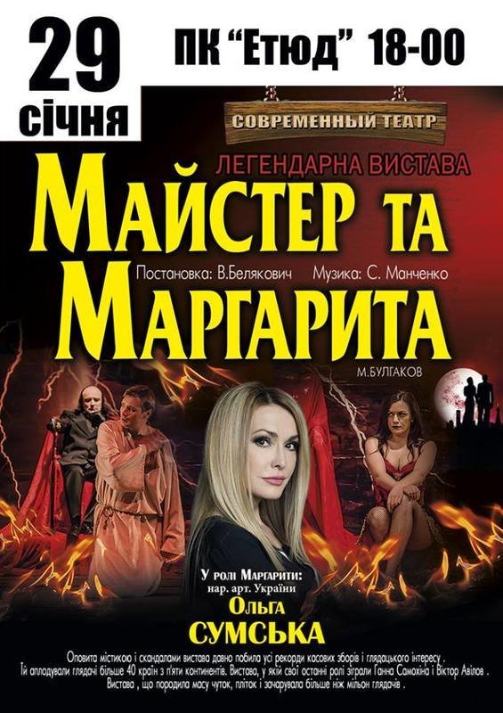 Запрошуємо на легендарну виставу «Майстер та Маргарита» за участі народної артистки України Ольги Сумської у головній ролі.