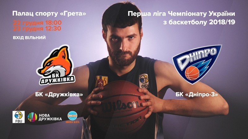 Всех любителей баскетбола и болельщиков БК «Дружковка» приглашаем на игру  Первой лиги Чемпионата Украины по баскетболу 2018/2019 между командами БК «Дружковка» и БК «Днепро».