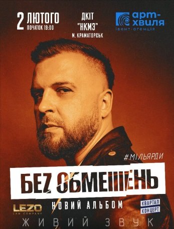 Туристична агенція "Арго" організовує поїздку на концерт гурту "Без обмежень", який відбудеться у Краматорську, який відбудеться 02.02.2020 року!