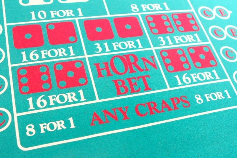 Багато гравців люблять ставки за столом для гри в кості через додатковий азарт, який з'являється завдяки більшій кількості чисел і можливості отримати високі виплати. Ставка на ріг - одна з таких популярних ставок. Це ставка на один рулон, яка виплачується, якщо випадає 2, 3, 11 або 12.